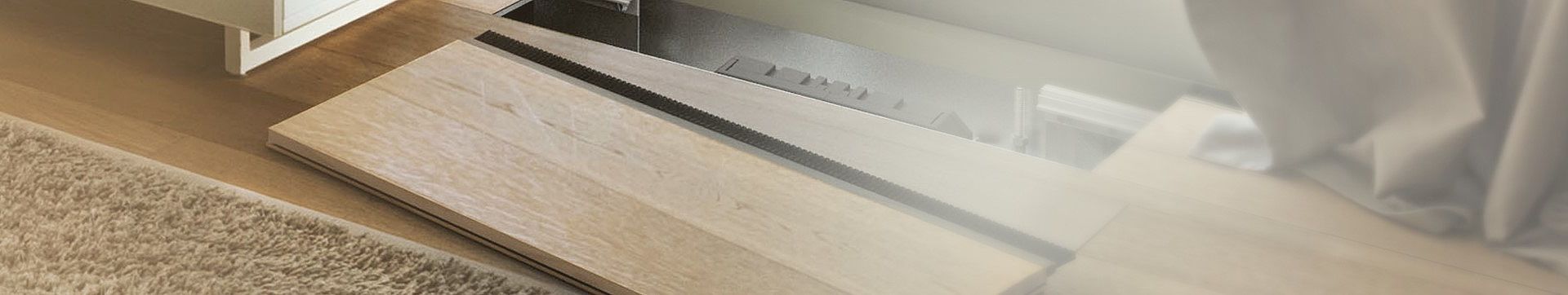 The screed-flush trunking with brush bar is installed at the edge of a side of the room. With regard to footfall noise transmission, the installation of this trunking leads to no worsening of the footfall noise properties in floating cement screen floors. In the case of wall penetrations through partitions with noise protection requirements, noise protection insulation should be installed as required. The air and footfall noise transmission for the OKB brush bar trunking system was evaluated in qualified tests with the MÜLLER-BBM GmbH testing institute in Planegg, Munich.
