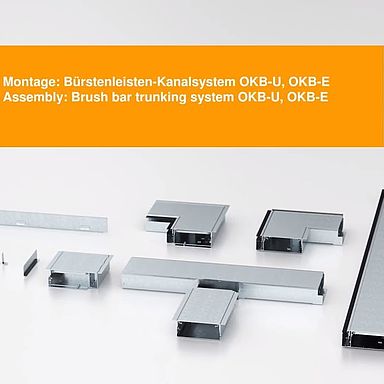 The open brush bar trunking system (OKB) is mounted on the raw concrete before the screed work. It runs along the walls for the entire length of the room. The practical fittings of the OKB system allow routing into any corner of the room. Appropriate prefabricated internal and external corners ensure uncomplicated mounting. The system can be adjusted exactly to the planned screed height using the height-adjustment feet.