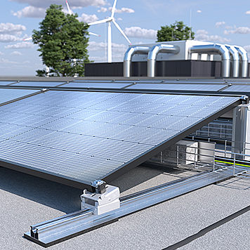Tal como o sistema para telhados inclinados, a solução fotovoltaica Magic para sistemas em telhado plano apresenta a tecnologia Magic para uma montagem sem parafusos e sem ferramentas, bem como o grampo universal para uma fixação fácil de todos módulos fotovoltaicos habituais no mercado. Além disso, o sistema de peso UniBase garante um peso variável do sistema com a ajuda de pedras de pavimentação retangulares, em qualquer altura após a instalação. O sistema UniBase pode ser combinado com outros produtos, conforme desejado, por exemplo, com o adaptador para caminhos de cabos em varão tipo 165 MBG HGRM.