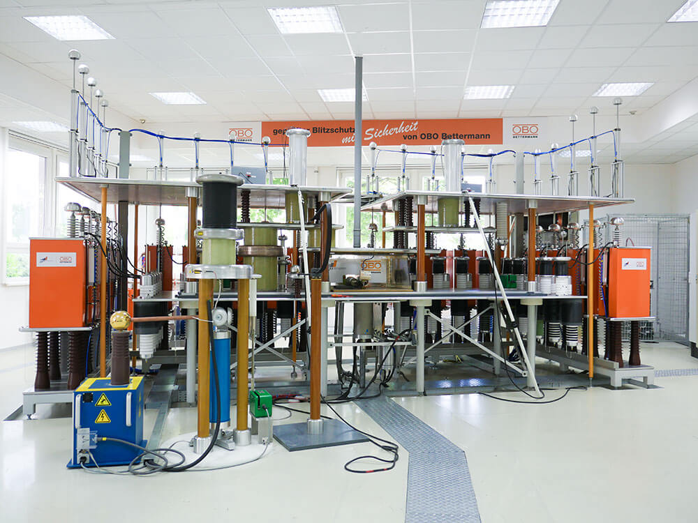 Os produtos OBO representam a mais elevada qualidade. Para o garantir, contamos com o nosso centro de testes BET interno, para além de extensos testes externos. Aqui, a qualidade, resiliência e a capacidade de carga dos produtos OBO são postas à prova em vários ensaios e testes exaustivos. Entre outras coisas, os nossos especialistas altamente qualificados testam componentes de proteção contra descargas atmosféricas, estruturas de proteção contra descargas atmosféricas e dispositivos de proteção contra sobretensões. Os efeitos dos eventos com raios são também aqui analisados de um ponto de vista científico.