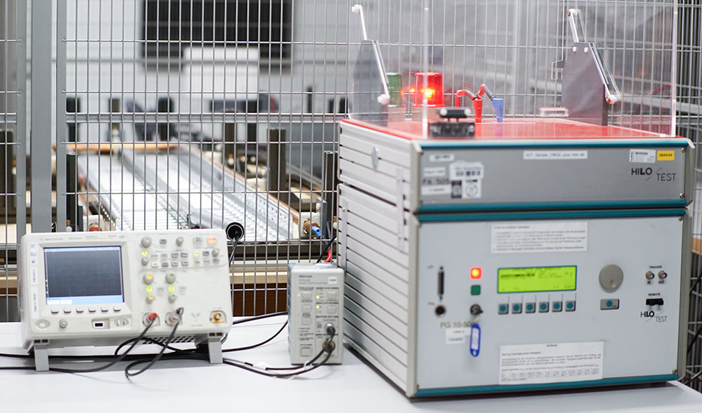 O gerador de corrente de raio pode ser usado para realizar testes de corrente de raio da DIN / EN / IEC 62561 com até 200 kA e uma forma de onda de 10/350 e 8/20. Podem ser testados componentes de sistemas de proteção contra raios, tais como componentes de ligação, materiais condutores, expulsores equipotenciais, contadores de raios e componentes para sistemas isolados de proteção contra raios.