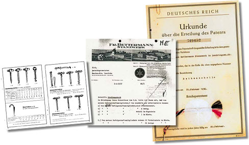 No início de 1936, Franz Bettermann recebeu a patente e o certificado da invenção de uma abraçadeira de pressão em fila do Gabinete de Patentes do Reich alemão. O fundador era amigo e promotor da inovação.