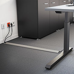 Ideal para os últimos metros até ao local de trabalho: Com a calha de chão OBO, a passagem de cabos pelo chão pode ser efetuada de forma muito fácil. A calha resistente é constituída por uma parte superior e uma parte inferior e permite a separação dos cabos de eletricidade e de dados. Os diferentes níveis de tensão podem ser separados por, pelo menos, duas câmaras. As calhas de chão podem ser ligadas umas às outras de forma rápida e fácil utilizando os conectores de junção OBO.