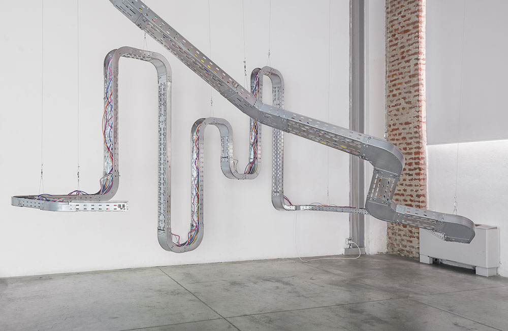 Kabelrinnen sind Teil einer Kunstinstallation von Eva und Franco Mattes