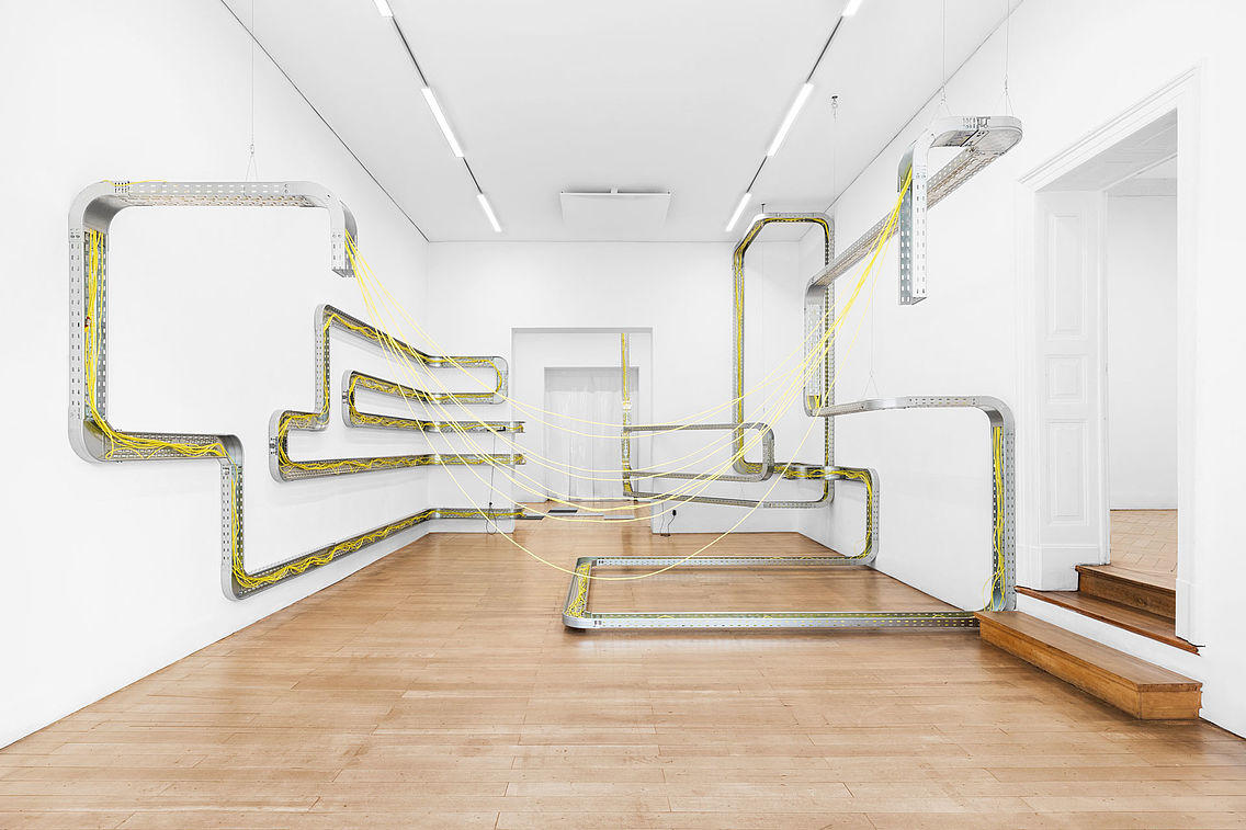 Desde meados da década de 90, os artistas Eva e Franco Mattes têm vindo a estudar o impacto da internet nas nossas vidas e a refletir nos seus trabalhos a forma como as imagens em rede têm cada vez mais influência no nosso comportamento privado e social. Na sua instalação, os caminhos de cabos em chapa OBO materializam a circulação das imagens em rede, serpenteando através da sala de exposição e tornando fisicamente percetível o fluxo de informação que, de outro modo, só seria percebido como abstrato.
