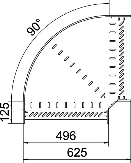 Descrição do produto90° bend made from CO2-reduced steel, for the creation of a horizontal branch. Fitting for latchable and screwable cable trays, side height 60 mm. Screwless mounting with double clamps or screw connection with FRS truss-head screws and M6 combination nuts. Can be used in indoor areas. Fastening material must be ordered separately.