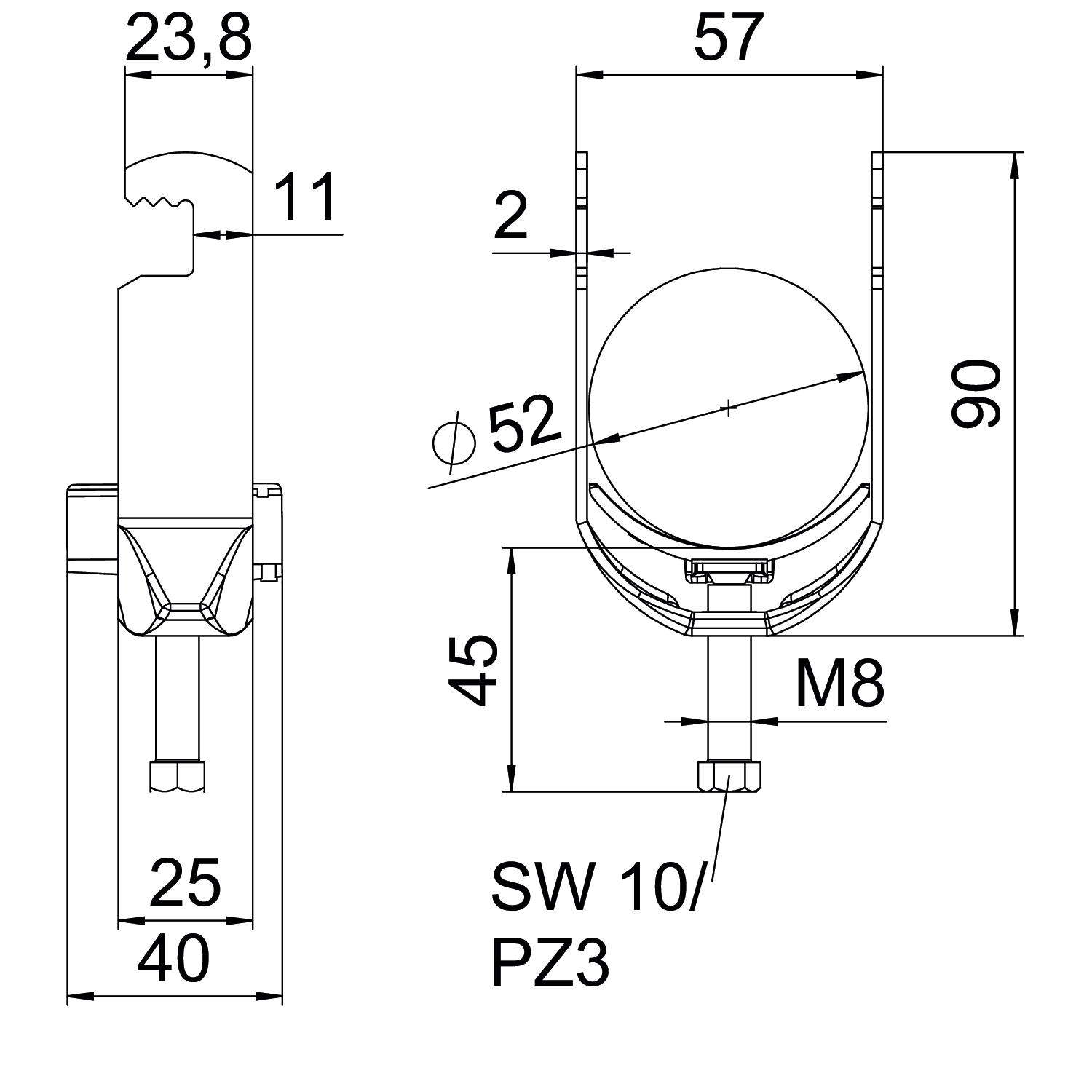 Altura 90 mm Com placa de plástico sim Comprimento 25 mm Comprimento exterior 40 mm Dimensão 46-52mm Espessura das chapas 2 mm Intervalo de aperto D máx. 52 mm Intervalo de aperto D mín. 46 mm Largura 57 mm Largura de rasgo 10 mm Livre de halogéneos sim Material Alumínio Material adicional Alumínio Máx. Binário de aperto 5 Nm Medida A 25 mm Medida B 57 mm Medida C 40 mm Medida G (mm) M8 Medida H 90 mm Medida L 45 mm Medida t 2 mm Número de cabos/tubos 1 para diâmetro de tubo máx. 52 mm para diâmetro de tubo mín. 46 mm Pegada de CO2 (GWP) do berço ao portão 0,4838 kg CO2e / 1 Peça Rosca M8 Superfície adicional sem tratamento Tipo de montagem perfil plano - Todos os tipos