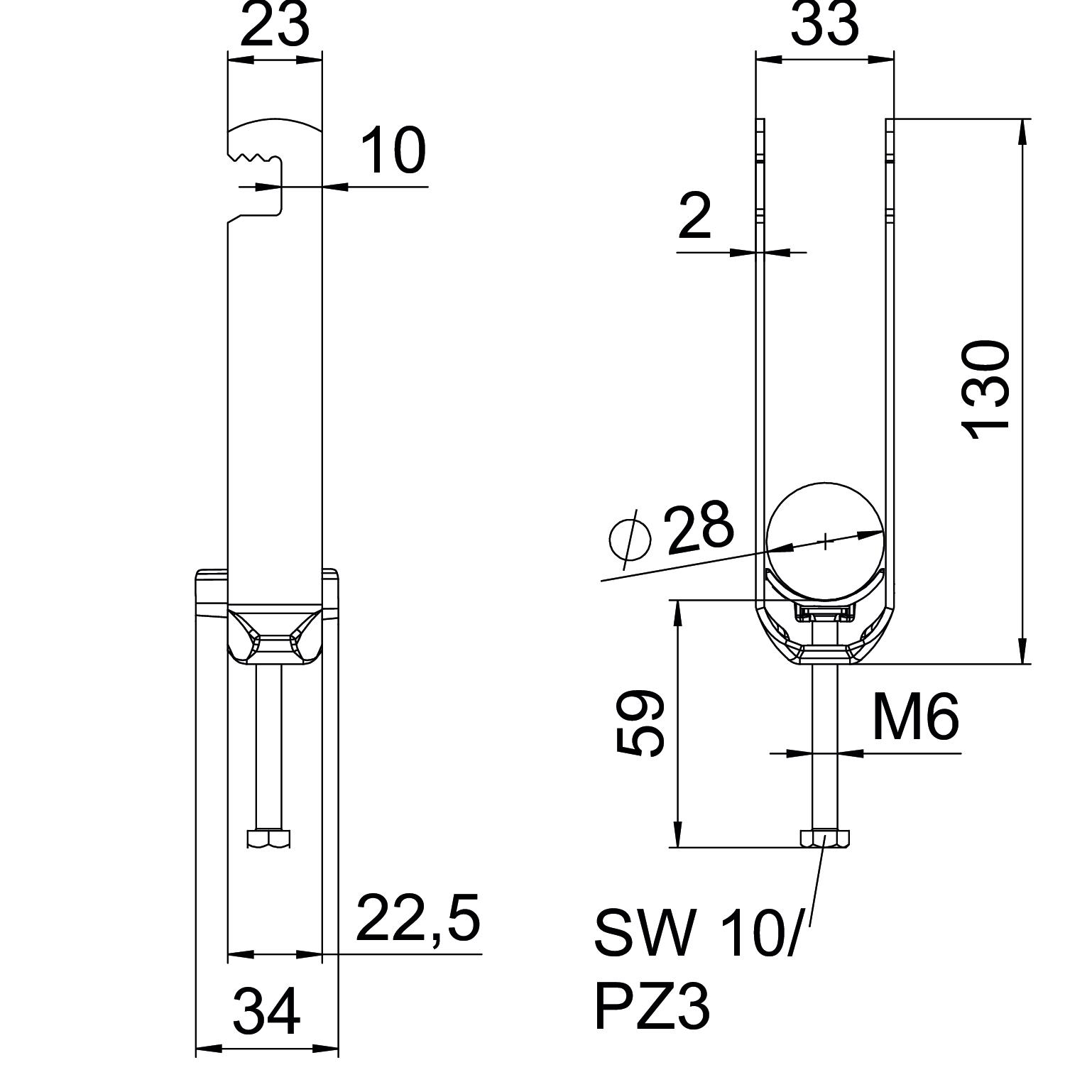 Altura 130 mm Com placa de plástico sim Comprimento 22,5 mm Dimensão 22-28mm Espessura das chapas 2 mm Intervalo de aperto D máx. 28 mm Intervalo de aperto D mín. 22 mm Largura 33 mm Largura de rasgo 10 mm Livre de halogéneos sim Material Aço Material adicional Aço Máx. Binário de aperto 3 Nm Medida A 22,5 mm Medida B 33 mm Medida C 34 mm Medida G (mm) M6 Medida H 130 mm Medida L 59 mm Medida t 2 mm Número de cabos/tubos 3 para diâmetro de tubo máx. 28 mm para diâmetro de tubo mín. 22 mm Pegada de CO2 (GWP) do berço ao portão 0,2974 kg CO2e / 1 Peça Rosca M6 Superfície Galvanizado por imersão a quente após maquinação Superfície adicional galvanizado a quente por centrifugação Tipo de montagem perfil plano - Todos os tipos