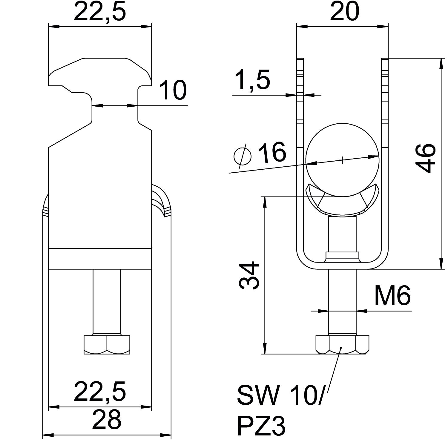 Descrição do produtoAbraçadeira BBS tipo cabeça de martelo, placa de pressão metálica com arestas arredondadas para proteção de cabos. Para montagem vertical e horizontal de 1 cabo individual em perfil C. Para largura de rasgo 16 - 17 mm. Com parafuso simples na placa de pressão, cabeça de parafuso hexagonal universal tam. 10, com fenda e fenda em cruz. Adequada para montagem em áreas interiores e exteriores. Recomenda-se o uso de uma contraplaca.