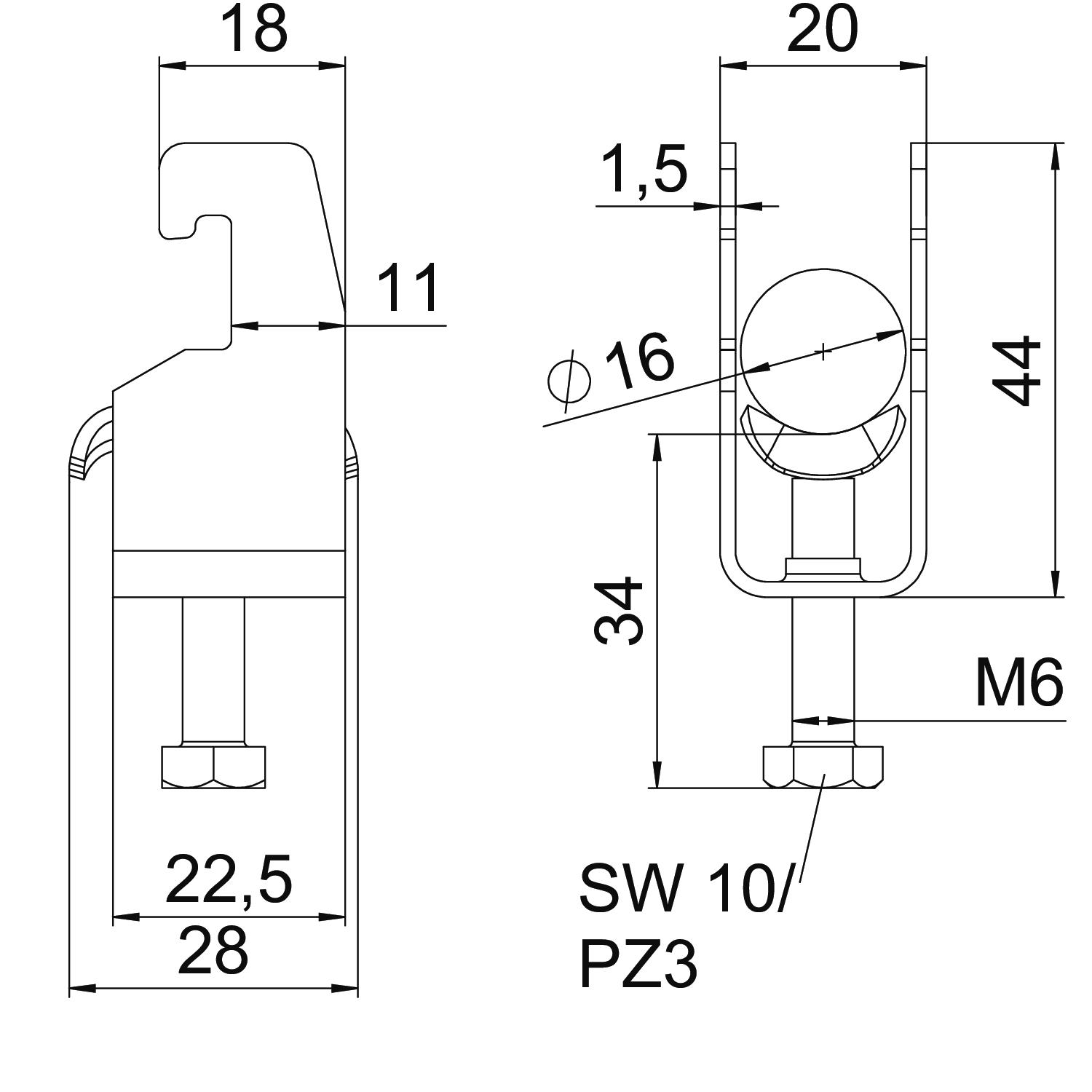 Descrição do produtoAbraçadeira BBS tipo U, placa de pressão metálica com arestas arredondadas para proteção de cabos. Para montagem vertical e horizontal de 1 cabo individual em perfil C. Para largura de rasgo 18 - 22 mm. Com parafuso simples na placa de pressão, cabeça de parafuso hexagonal universal tam. 10, com fenda e fenda em cruz. Adequada para montagem em áreas interiores e exteriores. Recomenda-se o uso de uma contraplaca.