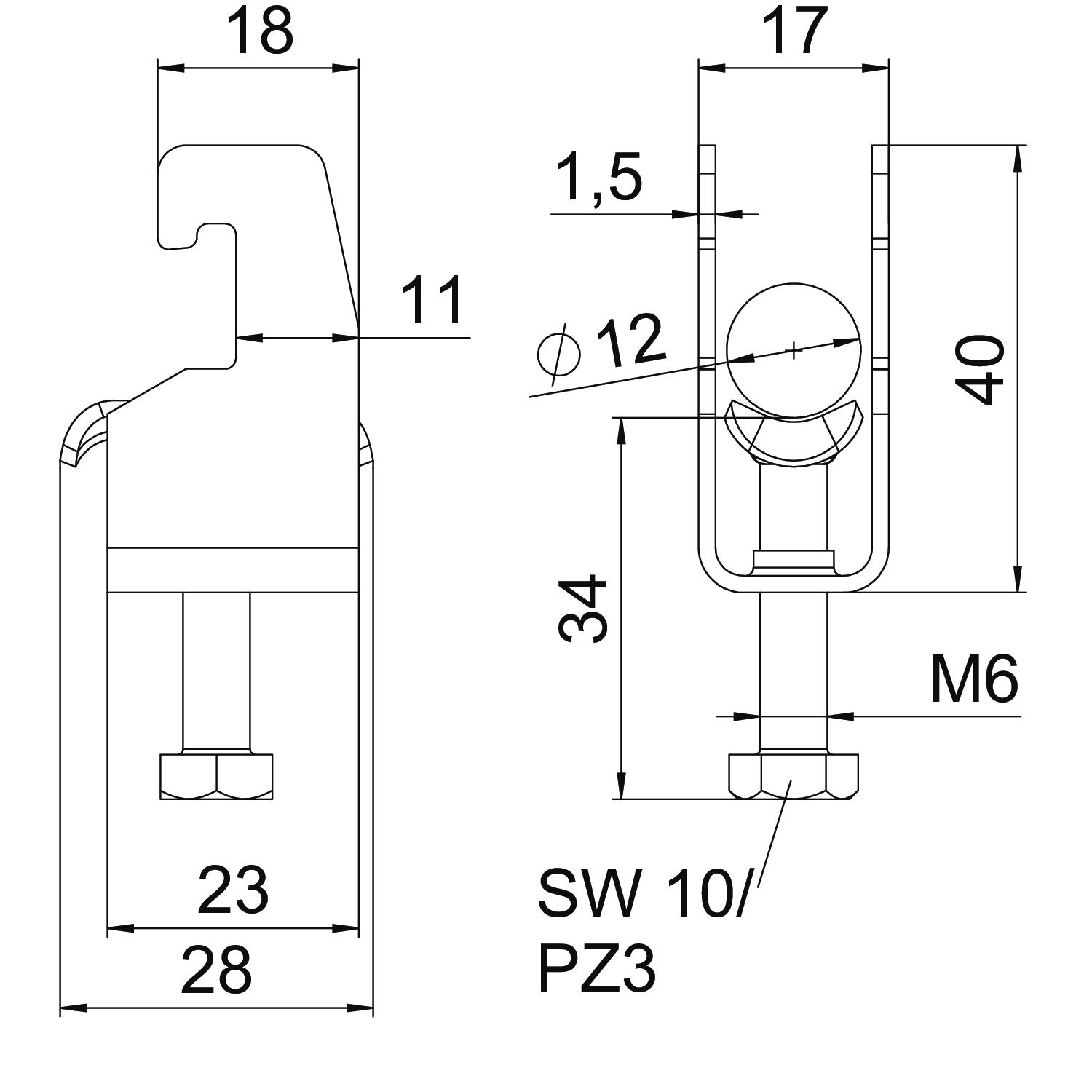 Abraçadeira BBS tipo U, placa de pressão metálica com arestas arredondadas para proteção de cabos. Para montagem vertical e horizontal de 1 cabo individual em perfil C. Para largura de rasgo 18 - 22 mm. Com parafuso simples na placa de pressão, cabeça de parafuso hexagonal universal tam. 10, com fenda e fenda em cruz. Adequada para montagem em áreas interiores e exteriores. Recomenda-se o uso de uma contraplaca.