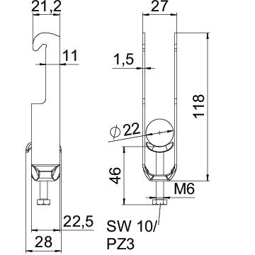 Altura 118 mm Com placa metálica sim Comprimento 22,5 mm Comprimento exterior 28 mm Dimensão 16-22mm Espessura das chapas 1,5 mm Intervalo de aperto D máx. 22 mm Intervalo de aperto D mín. 16 mm Largura 27 mm Largura de rasgo 10 mm Livre de halogéneos sim Material Aço Material adicional Aço Máx. Binário de aperto 3 Nm Medida A 22,5 mm Medida B 27 mm Medida C 28 mm Medida G (mm) M6 Medida H 118 mm Medida L 46 mm Medida t 1,5 mm Número de cabos/tubos 2 para diâmetro de tubo máx. 22 mm para diâmetro de tubo mín. 16 mm Pegada de CO2 (GWP) do berço ao portão 0,2399 kg CO2e / 1 Peça Rosca M6 Superfície Galvanizado por imersão a quente após maquinação Superfície adicional galvanizado a quente por centrifugação Tipo de montagem Perfil angular - Todos os tipos