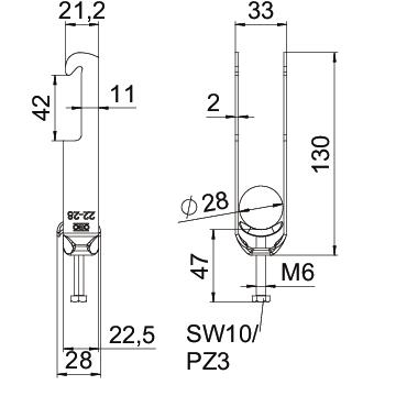 Altura 130 mm Com placa metálica sim Comprimento 22,5 mm Comprimento exterior 28 mm Dimensão 22-28mm Espessura das chapas 2 mm Intervalo de aperto D máx. 28 mm Intervalo de aperto D mín. 22 mm Largura 33 mm Largura de rasgo 10 mm Livre de halogéneos sim Material Aço Material adicional Aço Máx. Binário de aperto 3 Nm Medida A 22,5 mm Medida B 33 mm Medida C 28 mm Medida G (mm) M6 Medida H 130 mm Medida L 46 mm Medida t 2 mm Número de cabos/tubos 2 para diâmetro de tubo máx. 28 mm para diâmetro de tubo mín. 22 mm Pegada de CO2 (GWP) do berço ao portão 0,311 kg CO2e / 1 Peça Rosca M6 Superfície Galvanizado por imersão a quente após maquinação Superfície adicional galvanizado a quente por centrifugação Tipo de montagem Perfil angular - Todos os tipos