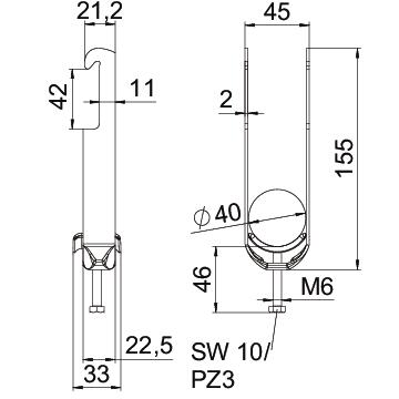 Altura 155 mm Com placa metálica sim Comprimento 22,5 mm Comprimento exterior 33 mm Dimensão 34-40mm Espessura das chapas 2 mm Intervalo de aperto D máx. 40 mm Intervalo de aperto D mín. 34 mm Largura 45 mm Largura de rasgo 10 mm Livre de halogéneos sim Material Aço Material adicional Aço Máx. Binário de aperto 3 Nm Medida A 22,5 mm Medida B 45 mm Medida C 33 mm Medida G (mm) M6 Medida H 155 mm Medida L 46 mm Medida t 2 mm Número de cabos/tubos 2 para diâmetro de tubo máx. 40 mm para diâmetro de tubo mín. 34 mm Pegada de CO2 (GWP) do berço ao portão 0,4183 kg CO2e / 1 Peça Rosca M6 Superfície Galvanizado por imersão a quente após maquinação Superfície adicional galvanizado a quente por centrifugação Tipo de montagem Perfil angular - Todos os tipos