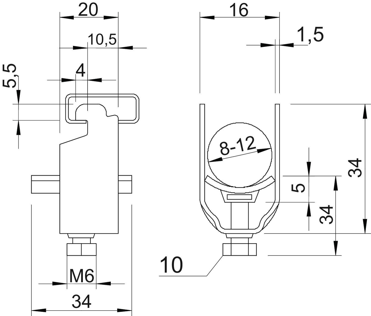 Com contraplaca não Com placa de plástico sim Com placa metálica não Dimensão 8-12mm Intervalo de aperto D máx. 12 mm Intervalo de aperto D mín. 8 mm Livre de halogéneos sim Material Aço Material adicional Aço Material da cuba Plástico Máx. Binário de aperto 3 Nm Medida A 20 mm Medida B 16 mm Medida C 34 mm Medida G (mm) M6 Medida H 34 mm Medida L 34 mm Medida t 1,5 mm Medida x 5 mm Número de cabos/tubos 1 para 1 cabo H 34 mm para 1 cabo L 34 para 2 cabos H 49 mm para 2 cabos L 47 mm para 3 cabos H 65 mm para 3 cabos L 47 mm para perfil com rasgo (com intervalo) máx. 12 mm para perfil com rasgo (com intervalo) mín. 11 mm Pegada de CO2 (GWP) do berço ao portão 0,0537 kg CO₂e / 1 Peça Qualidade do material da cuba Polipropileno Resistente não Superfície Galvanizado por imersão a quente após maquinação Superfície adicional galvanizado a quente por centrifugação Tipo de montagem Perfil - Todos os tipos