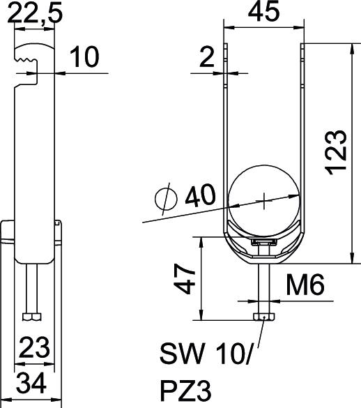 Altura 123 mm Com contraplaca não Com placa de plástico sim Comprimento 22,5 mm Comprimento exterior 34 mm Dimensão 34-40mm Espessura das chapas 2 mm Intervalo de aperto D máx. 40 mm Intervalo de aperto D mín. 34 mm Largura 45 mm Largura de rasgo 10 mm Livre de halogéneos sim Material Aço Material adicional Aço Material da cuba Plástico Máx. Binário de aperto 3 Nm Medida A 22,5 mm Medida B 45 mm Medida C 34 mm Medida G (mm) M6 Medida H 123 mm Medida L 47 mm Medida t 2 mm Número de cabos/tubos 2 para diâmetro de tubo máx. 40 mm para diâmetro de tubo mín. 34 mm Pegada de CO2 (GWP) do berço ao portão 0,3033 kg CO2e / 1 Peça Qualidade do material da cuba Polipropileno Rosca M6 Superfície Galvanizado por imersão a quente após maquinação Superfície adicional galvanizado a quente por centrifugação Tipo de montagem perfil plano - Todos os tipos