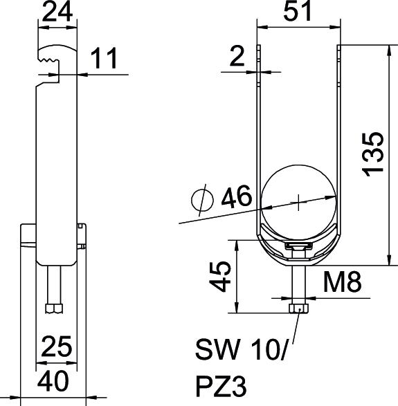 Altura 135 mm Com contraplaca não Com placa de plástico sim Comprimento 25 mm Comprimento exterior 40 mm Dimensão 40-46mm Espessura das chapas 2 mm Intervalo de aperto D máx. 46 mm Intervalo de aperto D mín. 40 mm Largura 51 mm Largura de rasgo 10 mm Livre de halogéneos sim Material Aço Material adicional Aço Material da cuba Plástico Máx. Binário de aperto 5 Nm Medida A 25 mm Medida B 51 mm Medida C 40 mm Medida G (mm) M8 Medida H 135 mm Medida L 45 mm Medida t 2 mm Número de cabos/tubos 2 para diâmetro de tubo máx. 46 mm para diâmetro de tubo mín. 40 mm Pegada de CO2 (GWP) do berço ao portão 0,3754 kg CO2e / 1 Peça Qualidade do material da cuba Polipropileno Rosca M8 Superfície Galvanizado por imersão a quente após maquinação Superfície adicional galvanizado a quente por centrifugação Tipo de montagem perfil plano - Todos os tipos
