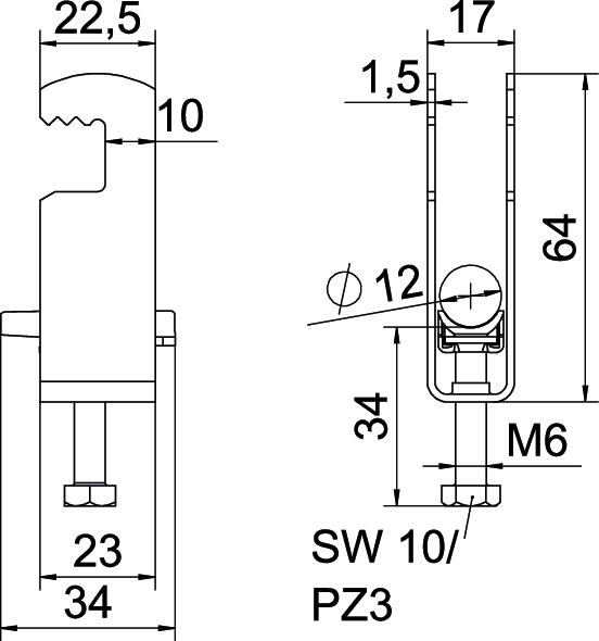 Altura 64 mm Com contraplaca não Com placa de plástico sim Comprimento 22,5 mm Comprimento exterior 34 mm Dimensão 08-12mm Espessura das chapas 1,5 mm Intervalo de aperto D máx. 12 mm Intervalo de aperto D mín. 8 mm Largura 17 mm Largura de rasgo 10 mm Livre de halogéneos sim Material Aço Material adicional Aço Material da cuba Plástico Máx. Binário de aperto 3 Nm Medida A 22,5 mm Medida B 17 mm Medida C 34 mm Medida G (mm) M6 Medida H 64 mm Medida L 35 mm Medida t 1,5 mm Número de cabos/tubos 2 para diâmetro de tubo máx. 12 mm para diâmetro de tubo mín. 8 mm Pegada de CO2 (GWP) do berço ao portão 0,1332 kg CO2e / 1 Peça Qualidade do material da cuba Polipropileno Rosca M6 Superfície Galvanizado por imersão a quente após maquinação Superfície adicional galvanizado a quente por centrifugação Tipo de montagem perfil plano - Todos os tipos