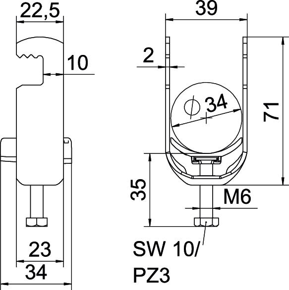 Altura 71 mm Com contraplaca não Com placa de plástico sim Comprimento 22,5 mm Comprimento exterior 34 mm Dimensão 28-34mm Espessura das chapas 2 mm Intervalo de aperto D máx. 34 mm Intervalo de aperto D mín. 28 mm Largura 39 mm Largura de rasgo 10 mm Livre de halogéneos sim Material Aço Material adicional Aço Material da cuba Plástico Máx. Binário de aperto 3 Nm Medida A 22,5 mm Medida B 39 mm Medida C 34 mm Medida G (mm) M6 Medida H 71 mm Medida L 35 mm Medida t 2 mm Número de cabos/tubos 1 para diâmetro de tubo máx. 34 mm para diâmetro de tubo mín. 28 mm Pegada de CO2 (GWP) do berço ao portão 0,1575 kg CO2e / 1 Peça Qualidade do material da cuba Polipropileno Rosca M6 Superfície Galvanizado por imersão a quente após maquinação Superfície adicional galvanizado a quente por centrifugação Tipo de montagem perfil plano - Todos os tipos