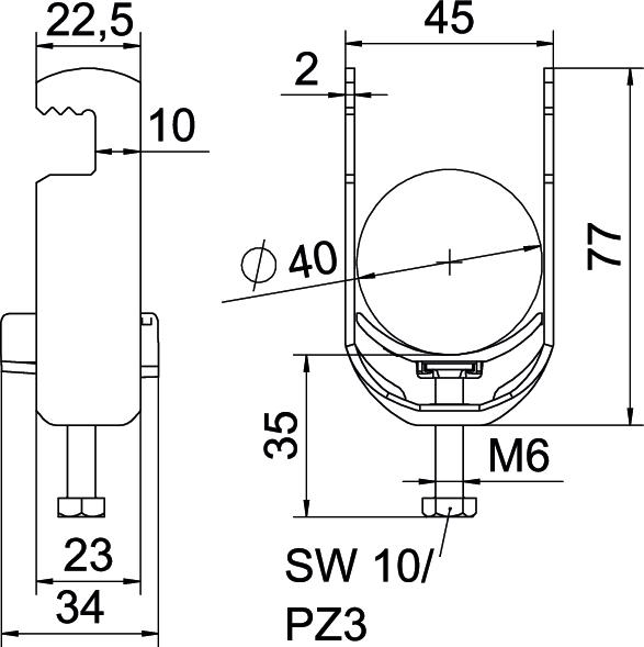 Altura 77 mm Com contraplaca não Com placa de plástico sim Comprimento 22,5 mm Comprimento exterior 34 mm Dimensão 34-40mm Espessura das chapas 2 mm Intervalo de aperto D máx. 40 mm Intervalo de aperto D mín. 34 mm Largura 45 mm Largura de rasgo 10 mm Livre de halogéneos sim Material Aço Material adicional Aço Material da cuba Plástico Máx. Binário de aperto 3 Nm Medida A 22,5 mm Medida B 45 mm Medida C 34 mm Medida G (mm) M6 Medida H 77 mm Medida L 35 mm Medida t 2 mm Número de cabos/tubos 1 para diâmetro de tubo máx. 40 mm para diâmetro de tubo mín. 34 mm Pegada de CO2 (GWP) do berço ao portão 0,162 kg CO2e / 1 Peça Qualidade do material da cuba Polipropileno Rosca M6 Superfície Galvanizado por imersão a quente após maquinação Superfície adicional galvanizado a quente por centrifugação Tipo de montagem perfil plano - Todos os tipos