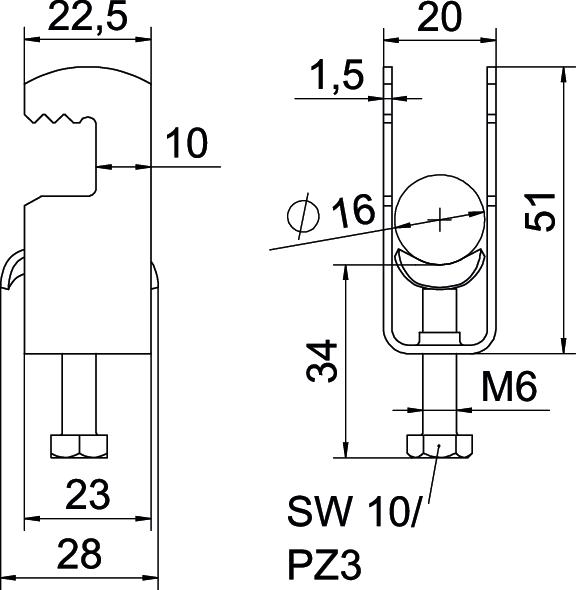 Altura 51 mm Com contraplaca não Com placa metálica sim Comprimento 22,5 mm Comprimento exterior 28 mm Dimensão 12-16mm Espessura das chapas 1,5 mm Intervalo de aperto D máx. 16 mm Intervalo de aperto D mín. 12 mm Largura 20 mm Largura de rasgo 10 mm Livre de halogéneos sim Material Aço Material adicional Aço Material da cuba Aço Máx. Binário de aperto 3 Nm Medida A 22,5 mm Medida B 20 mm Medida C 28 mm Medida G (mm) M6 Medida H 51 mm Medida L 34 mm Medida t 1,5 mm Número de cabos/tubos 1 para diâmetro de tubo máx. 16 mm para diâmetro de tubo mín. 12 mm Pegada de CO2 (GWP) do berço ao portão 0,1034 kg CO2e / 1 Peça Rosca M6 Superfície Galvanizado por imersão a quente após maquinação Superfície adicional galvanizado a quente por centrifugação Tipo de montagem perfil plano - Todos os tipos