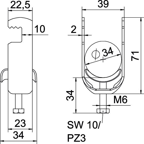 Altura 71 mm Com contraplaca não Com placa metálica sim Comprimento 22,5 mm Comprimento exterior 34 mm Dimensão 28-34mm Espessura das chapas 2 mm Intervalo de aperto D máx. 34 mm Intervalo de aperto D mín. 28 mm Largura 39 mm Largura de rasgo 10 mm Livre de halogéneos sim Material Aço Material adicional Aço Material da cuba Aço Máx. Binário de aperto 3 Nm Medida A 22,5 mm Medida B 39 mm Medida C 34 mm Medida G (mm) M6 Medida H 71 mm Medida L 34 mm Medida t 2 mm Número de cabos/tubos 1 para diâmetro de tubo máx. 34 mm para diâmetro de tubo mín. 28 mm Pegada de CO2 (GWP) do berço ao portão 0,1759 kg CO2e / 1 Peça Rosca M6 Superfície Galvanizado por imersão a quente após maquinação Superfície adicional galvanizado a quente por centrifugação Tipo de montagem perfil plano - Todos os tipos