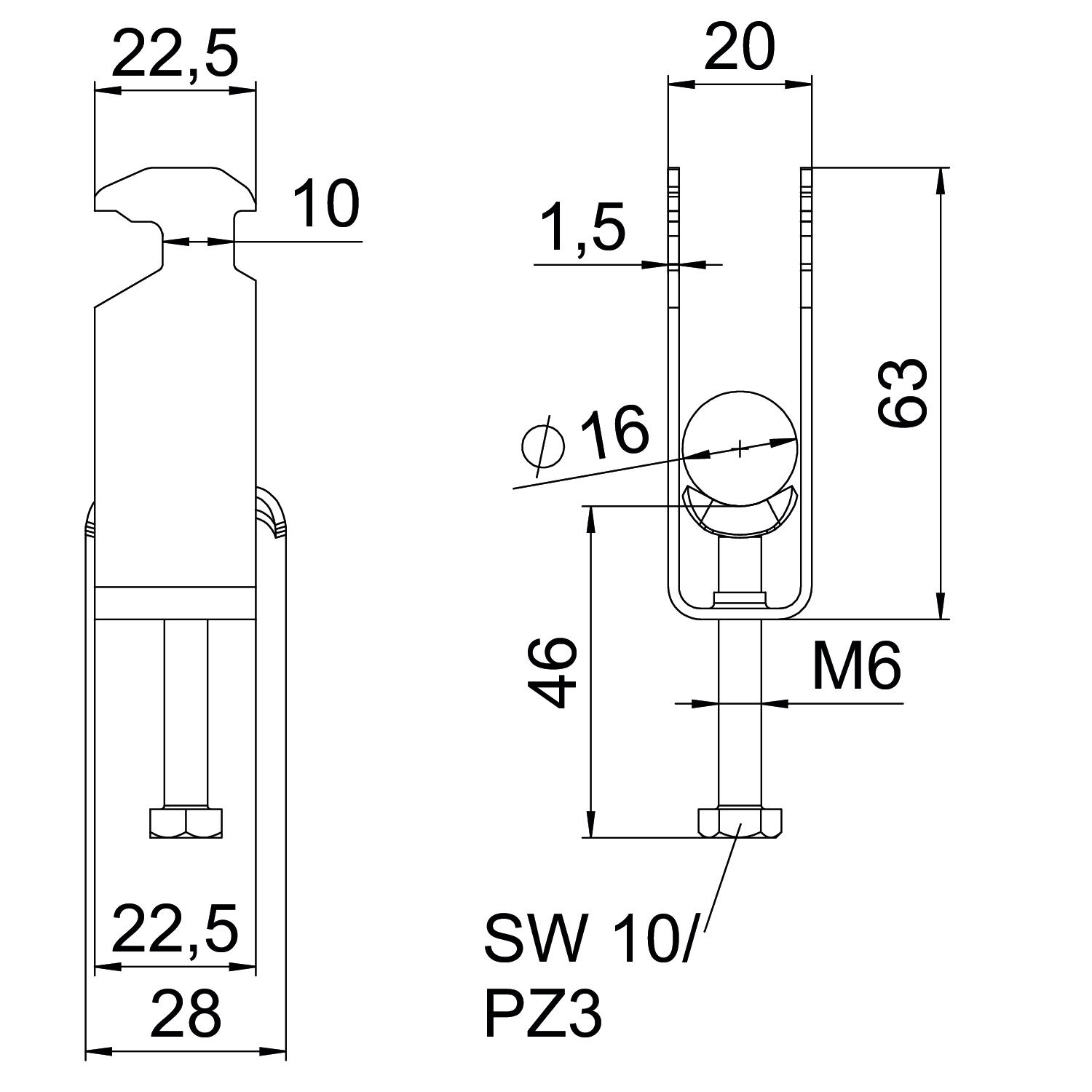 Descrição do produtoAbraçadeira BBS tipo cabeça de martelo, placa de pressão metálica com arestas arredondadas para proteção de cabos. Para montagem vertical e horizontal de 2 cabos individuais em perfil C. Para largura de rasgo 16 - 17 mm. Com parafuso simples na placa de pressão, cabeça de parafuso hexagonal universal tam. 10, com fenda e fenda em cruz. Adequado para montagem em áreas interiores e exteriores.. Vários cabos devem ser separados por placas duplas. Recomenda-se o uso de uma contraplaca.