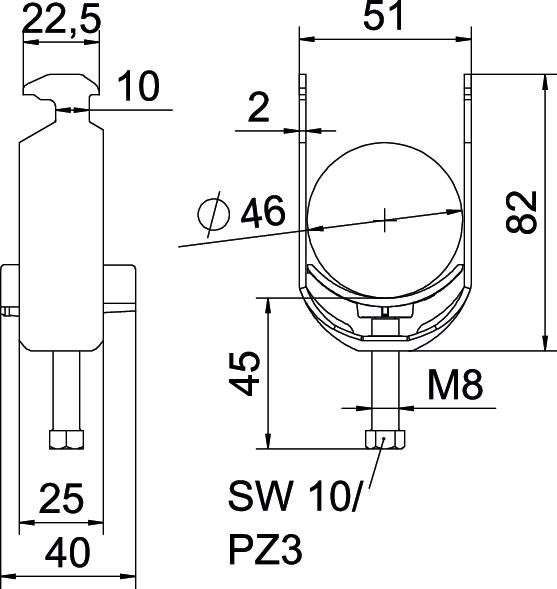 Altura 82 mm Com contraplaca não Com placa de plástico sim Comprimento 25 mm Comprimento exterior 40 mm Dimensão 40-46mm Espessura das chapas 2 mm Intervalo de aperto D máx. 46 mm Intervalo de aperto D mín. 40 mm Largura 51 mm Largura de rasgo 10 mm Livre de halogéneos sim Material Aço inoxidável, livre de ferrugem 1.4301 Material adicional aço inoxidável Material da cuba Plástico Máx. Binário de aperto 5 Nm Medida A 25 mm Medida B 51 mm Medida C 40 mm Medida G (mm) M8 Medida H 82 mm Medida L 45 mm Medida t 2 mm Número de cabos/tubos 1 para diâmetro de tubo máx. 46 mm para diâmetro de tubo mín. 40 mm para perfil com rasgo (com intervalo) máx. 17 mm para perfil com rasgo (com intervalo) mín. 16 mm Pegada de CO2 (GWP) do berço ao portão 0,6182 kg CO2e / 1 Peça Qualidade do material da cuba Polipropileno Rosca M8 Superfície brilhante, pós-tratamento Superfície adicional sem tratamento Tipo de montagem Perfil - Todos os tipos