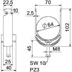 Altura 102 mm Com contraplaca não Com placa de plástico sim Comprimento 25 mm Comprimento exterior 40 mm Dimensão 58-64mm Espessura das chapas 2,5 mm Intervalo de aperto D máx. 64 mm Intervalo de aperto D mín. 58 mm Largura 70 mm Largura de rasgo 10 mm Livre de halogéneos sim Material Aço Material adicional Aço Material da cuba Plástico Máx. Binário de aperto 5 Nm Medida A 25 mm Medida B 70 mm Medida C 40 mm Medida G (mm) M8 Medida H 102 mm Medida L 45 mm Medida t 2,5 mm Número de cabos/tubos 1 para diâmetro de tubo máx. 64 mm para diâmetro de tubo mín. 58 mm para perfil com rasgo (com intervalo) máx. 17 mm para perfil com rasgo (com intervalo) mín. 16 mm Pegada de CO2 (GWP) do berço ao portão 0,3103 kg CO2e / 1 Peça Qualidade do material da cuba Polipropileno Rosca M8 Superfície Galvanizado por imersão a quente após maquinação Superfície adicional galvanizado a quente por centrifugação Tipo de montagem Perfil - Todos os tipos