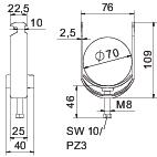 Altura 109 mm Com contraplaca não Com placa de plástico sim Comprimento 25 mm Comprimento exterior 40 mm Dimensão 64-70mm Espessura das chapas 2,5 mm Intervalo de aperto D máx. 70 mm Intervalo de aperto D mín. 64 mm Largura 76 mm Largura de rasgo 10 mm Livre de halogéneos sim Material Aço Material adicional Aço Material da cuba Plástico Máx. Binário de aperto 5 Nm Medida A 25 mm Medida B 76 mm Medida C 40 mm Medida G (mm) M8 Medida H 109 mm Medida L 45 mm Medida t 2,5 mm Número de cabos/tubos 1 para diâmetro de tubo máx. 70 mm para diâmetro de tubo mín. 64 mm para perfil com rasgo (com intervalo) máx. 17 mm para perfil com rasgo (com intervalo) mín. 16 mm Pegada de CO2 (GWP) do berço ao portão 0,3444 kg CO2e / 1 Peça Qualidade do material da cuba Polipropileno Rosca M8 Superfície Galvanizado por imersão a quente após maquinação Superfície adicional galvanizado a quente por centrifugação Tipo de montagem Perfil - Todos os tipos