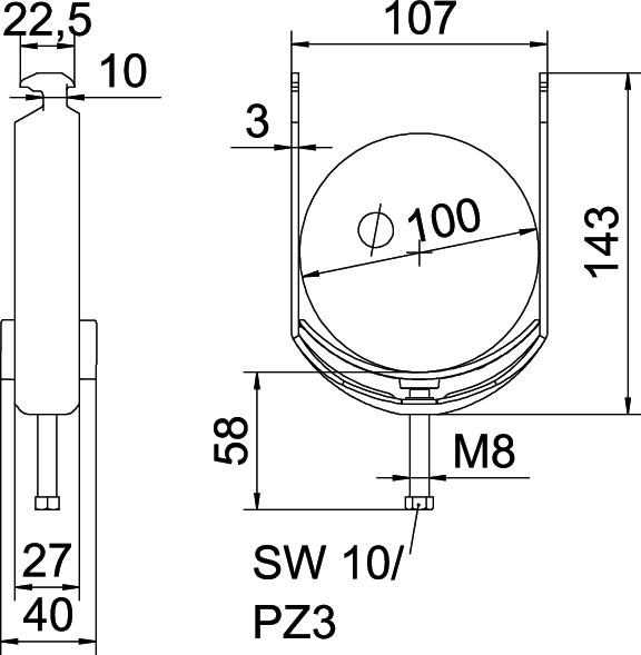Altura 143 mm Com contraplaca não Com placa de plástico sim Comprimento 27 mm Comprimento exterior 40 mm Dimensão 90-100mm Espessura das chapas 3 mm Intervalo de aperto D máx. 100 mm Intervalo de aperto D mín. 90 mm Largura 107 mm Largura de rasgo 10 mm Livre de halogéneos sim Material Aço Material adicional Aço Material da cuba Plástico Máx. Binário de aperto 5 Nm Medida A 27 mm Medida B 107 mm Medida C 40 mm Medida G (mm) M8 Medida H 143 mm Medida L 58 mm Medida t 3 mm Número de cabos/tubos 1 para diâmetro de tubo máx. 100 mm para diâmetro de tubo mín. 90 mm para perfil com rasgo (com intervalo) máx. 17 mm para perfil com rasgo (com intervalo) mín. 16 mm Pegada de CO2 (GWP) do berço ao portão 0,6593 kg CO2e / 1 Peça Qualidade do material da cuba Polipropileno Rosca M8 Superfície Galvanizado por imersão a quente após maquinação Superfície adicional galvanizado a quente por centrifugação Tipo de montagem Perfil - Todos os tipos