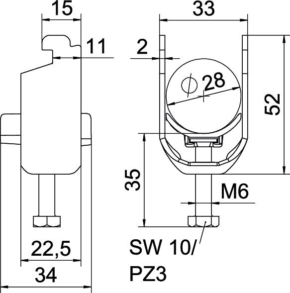 Altura 52 mm Com contraplaca não Com placa de plástico sim Comprimento 22,5 mm Comprimento exterior 34 mm Dimensão 22-28mm Espessura das chapas 2 mm Intervalo de aperto D máx. 28 mm Intervalo de aperto D mín. 22 mm Largura 33 mm Largura de rasgo 10 mm Livre de halogéneos sim Material Alumínio Material adicional Alumínio Material da cuba Plástico Máx. Binário de aperto 2 Nm Medida A 22,5 mm Medida B 33 mm Medida C 34 mm Medida G (mm) M6 Medida H 52 mm Medida L 35 mm Medida t 2 mm Número de cabos/tubos 1 para diâmetro de tubo máx. 28 mm para diâmetro de tubo mín. 22 mm para perfil com rasgo (com intervalo) máx. 12 mm para perfil com rasgo (com intervalo) mín. 11 mm Pegada de CO2 (GWP) do berço ao portão 0,2542 kg CO2e / 1 Peça Qualidade do material da cuba Polipropileno Rosca M6 Superfície adicional sem tratamento Tipo de montagem Perfil - Todos os tipos