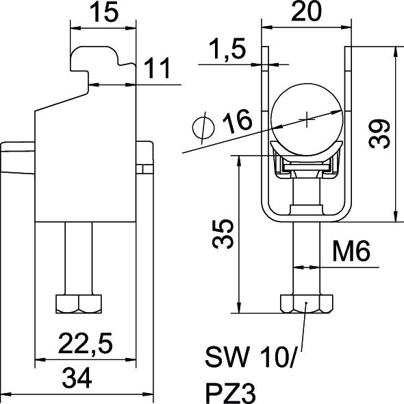 Altura 39 mm Com contraplaca não Com placa de plástico sim Comprimento 22,5 mm Comprimento exterior 34 mm Dimensão 12-16mm Espessura das chapas 1,5 mm Intervalo de aperto D máx. 16 mm Intervalo de aperto D mín. 12 mm Largura 20 mm Largura de rasgo 10 mm Livre de halogéneos sim Material Aço Material adicional Aço Material da cuba Plástico Máx. Binário de aperto 3 Nm Medida A 22,5 mm Medida B 20 mm Medida C 34 mm Medida G (mm) M6 Medida H 39 mm Medida L 35 mm Medida t 1,5 mm Número de cabos/tubos 1 para diâmetro de tubo máx. 16 mm para diâmetro de tubo mín. 12 mm para perfil com rasgo (com intervalo) máx. 12 mm para perfil com rasgo (com intervalo) mín. 11 mm Pegada de CO2 (GWP) do berço ao portão 0,0725 kg CO2e / 1 Peça Qualidade do material da cuba Polipropileno Rosca M6 Superfície Galvanizado por imersão a quente após maquinação Superfície adicional galvanizado a quente por centrifugação Tipo de montagem Perfil - Todos os tipos