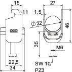 Altura 46 mm Com contraplaca não Com placa de plástico sim Comprimento 22,5 mm Comprimento exterior 34 mm Dimensão 16-22mm Espessura das chapas 1,5 mm Intervalo de aperto D máx. 22 mm Intervalo de aperto D mín. 16 mm Largura 27 mm Largura de rasgo 10 mm Livre de halogéneos sim Material Aço Material adicional Aço Material da cuba Plástico Máx. Binário de aperto 3 Nm Medida A 22,5 mm Medida B 27 mm Medida C 34 mm Medida G (mm) M6 Medida H 46 mm Medida L 35 mm Medida t 1,5 mm Número de cabos/tubos 1 para diâmetro de tubo máx. 22 mm para diâmetro de tubo mín. 16 mm para perfil com rasgo (com intervalo) máx. 12 mm para perfil com rasgo (com intervalo) mín. 11 mm Pegada de CO2 (GWP) do berço ao portão 0,0857 kg CO2e / 1 Peça Qualidade do material da cuba Polipropileno Rosca M6 Superfície Galvanizado por imersão a quente após maquinação Superfície adicional galvanizado a quente por centrifugação Tipo de montagem Perfil - Todos os tipos
