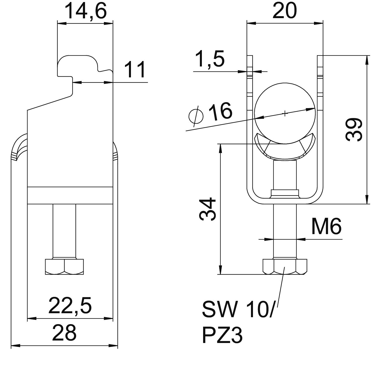 Abraçadeira BBS tipo N, placa de pressão metálica com arestas arredondadas para proteção de cabos. Para montagem vertical e horizontal de 1 cabo individual em perfil C. Para largura de rasgo 11 - 12 mm. Com parafuso simples na placa de pressão, cabeça de parafuso hexagonal universal tam. 10, com fenda e fenda em cruz. Adequado para montagem em áreas interiores e exteriores. Recomenda-se o uso de uma contraplaca.