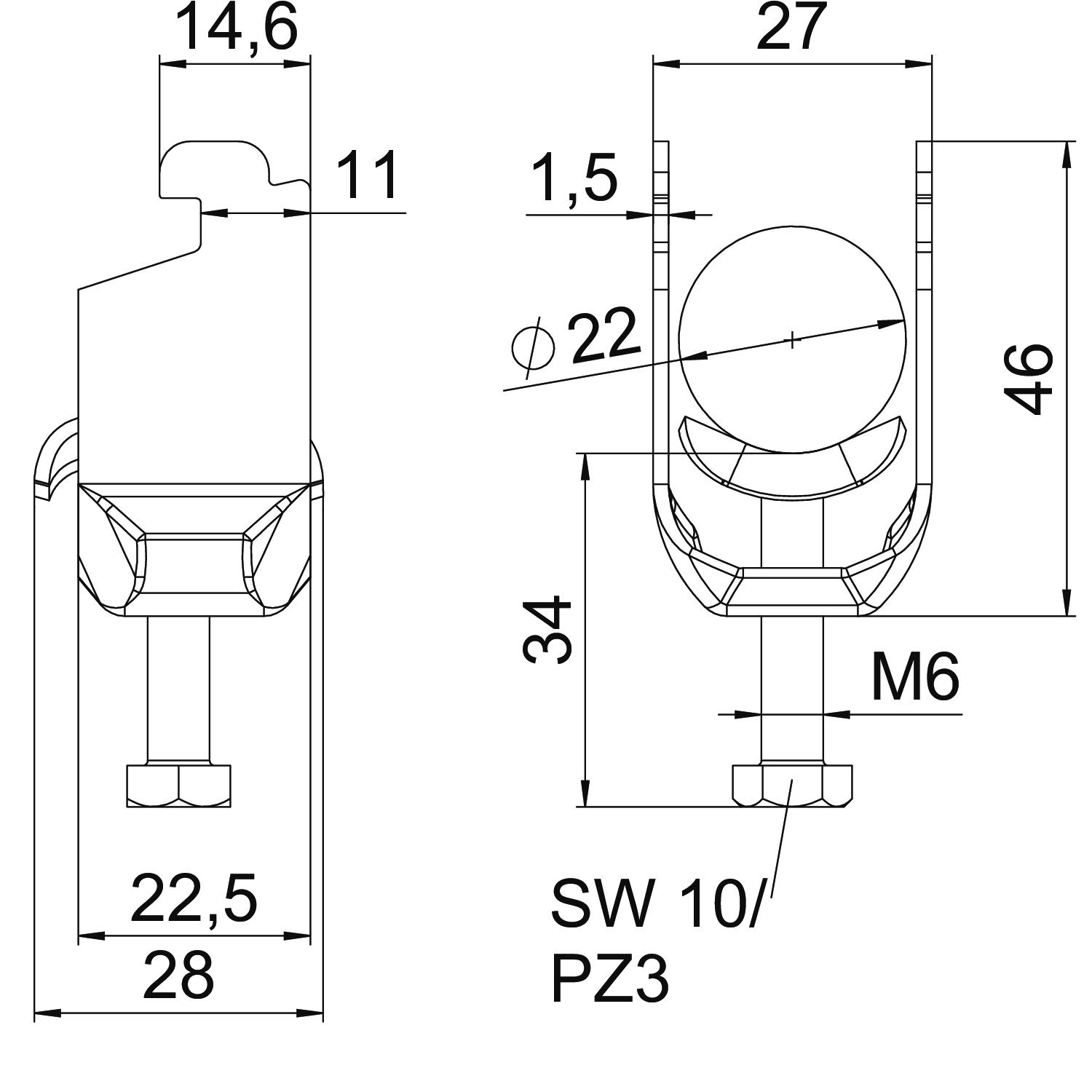 Descrição do produtoAbraçadeira BBS tipo N, placa de pressão metálica com arestas arredondadas para proteção de cabos. Para montagem vertical e horizontal de 1 cabo individual em perfil C. Para largura de rasgo 11 - 12 mm. Com parafuso simples na placa de pressão, cabeça de parafuso hexagonal universal tam. 10, com fenda e fenda em cruz. Adequado para montagem em áreas interiores e exteriores. Recomenda-se o uso de uma contraplaca.