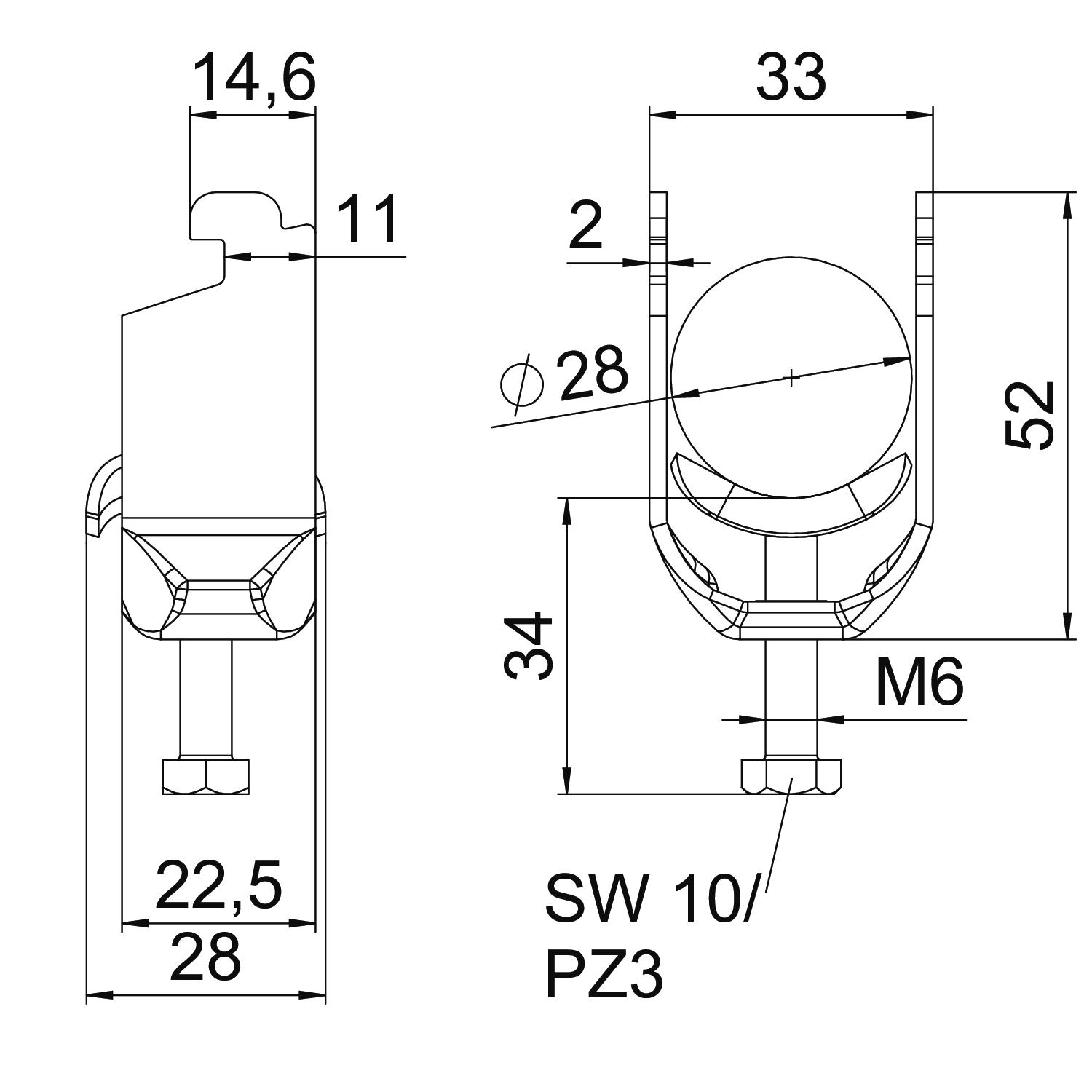 Descrição do produtoAbraçadeira BBS tipo N, placa de pressão metálica com arestas arredondadas para proteção de cabos. Para montagem vertical e horizontal de 1 cabo individual em perfil C. Para largura de rasgo 11 - 12 mm. Com parafuso simples na placa de pressão, cabeça de parafuso hexagonal universal tam. 10, com fenda e fenda em cruz. Adequado para montagem em áreas interiores e exteriores. Recomenda-se o uso de uma contraplaca.