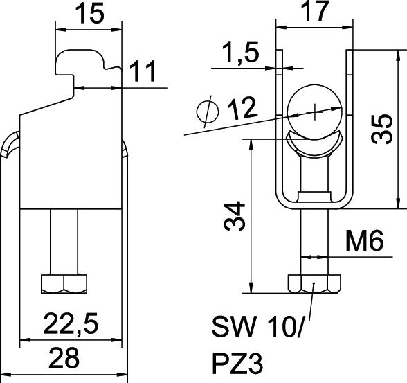 Altura 35 mm Com contraplaca não Com placa metálica sim Comprimento 22,5 mm Comprimento exterior 28 mm Dimensão 08-12mm Espessura das chapas 1,5 mm Intervalo de aperto D máx. 12 mm Intervalo de aperto D mín. 8 mm Largura 17 mm Largura de rasgo 10 mm Livre de halogéneos sim Material Aço Material adicional Aço Material da cuba Aço Máx. Binário de aperto 3 Nm Medida A 22 mm Medida B 17 mm Medida C 28 mm Medida G (mm) M6 Medida H 35 mm Medida L 34 mm Medida t 1,5 mm Número de cabos/tubos 1 para diâmetro de tubo máx. 12 mm para diâmetro de tubo mín. 8 mm para perfil com rasgo (com intervalo) máx. 12 mm para perfil com rasgo (com intervalo) mín. 11 mm Pegada de CO2 (GWP) do berço ao portão 0,0791 kg CO2e / 1 Peça Rosca M6 Superfície Galvanizado por imersão a quente após maquinação Superfície adicional galvanizado a quente por centrifugação Tipo de montagem Perfil - Todos os tipos