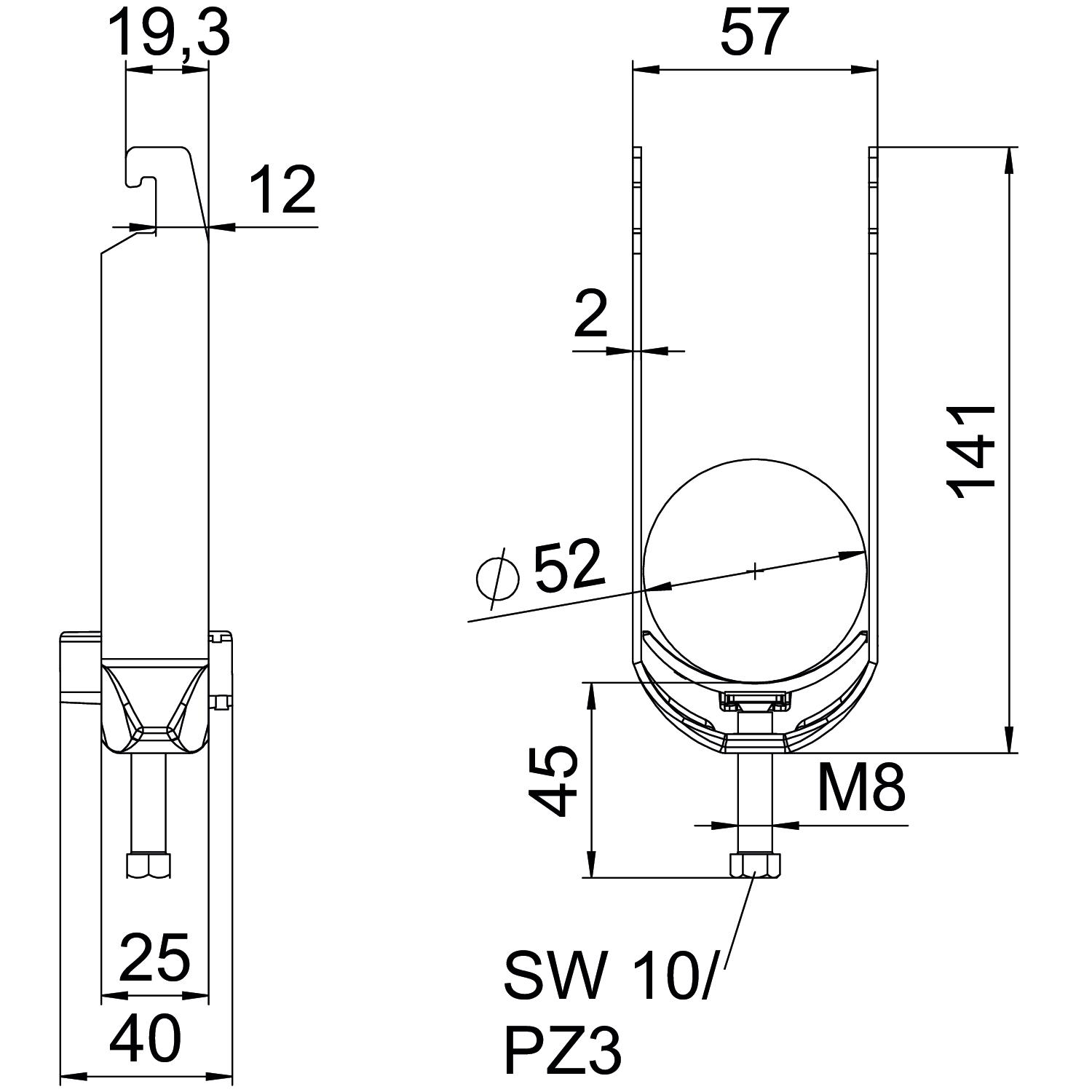 Altura 141 mm Com contraplaca não Com placa de plástico sim Com placa metálica não Comprimento 25 mm Comprimento exterior 40 mm Dimensão 46-52mm Espessura das chapas 2 mm Intervalo de aperto D máx. 52 mm Intervalo de aperto D mín. 46 mm Largura 57 mm Largura de rasgo 10 mm Livre de halogéneos sim Material Alumínio Material adicional Alumínio Material da cuba Plástico Máx. Binário de aperto 5 Nm Medida A 25 mm Medida B 57 mm Medida C 40 mm Medida G (mm) M8 Medida H 141 mm Medida L 45 mm Medida t 2 mm Número de cabos/tubos 2 para diâmetro de tubo máx. 52 mm para diâmetro de tubo mín. 46 mm para perfil com rasgo (com intervalo) máx. 22 mm para perfil com rasgo (com intervalo) mín. 18 mm Pegada de CO2 (GWP) do berço ao portão 0,6116 kg CO2e / 1 Peça Qualidade do material da cuba Polipropileno Rosca M8 Superfície adicional sem tratamento Tipo de montagem Perfil - Todos os tipos