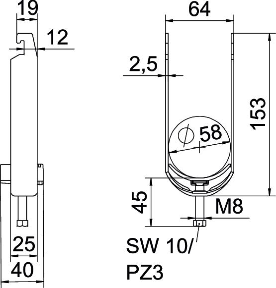 Altura 153 mm Com contraplaca não Com placa de plástico sim Comprimento 25 mm Comprimento exterior 40 mm Dimensão 52-58mm Espessura das chapas 2,5 mm Intervalo de aperto D máx. 58 mm Intervalo de aperto D mín. 52 mm Largura 64 mm Largura de rasgo 10 mm Livre de halogéneos sim Material Aço Material adicional Aço Material da cuba Plástico Máx. Binário de aperto 5 Nm Medida A 25 mm Medida B 64 mm Medida C 40 mm Medida G (mm) M8 Medida H 153 mm Medida L 45 mm Medida t 2,5 mm Número de cabos/tubos 2 para diâmetro de tubo máx. 58 mm para diâmetro de tubo mín. 52 mm para perfil com rasgo (com intervalo) máx. 22 mm para perfil com rasgo (com intervalo) mín. 18 mm Pegada de CO2 (GWP) do berço ao portão 0,5178 kg CO2e / 1 Peça Qualidade do material da cuba Polipropileno Rosca M8 Superfície Galvanizado por imersão a quente após maquinação Superfície adicional galvanizado a quente por centrifugação Tipo de montagem Perfil - Todos os tipos