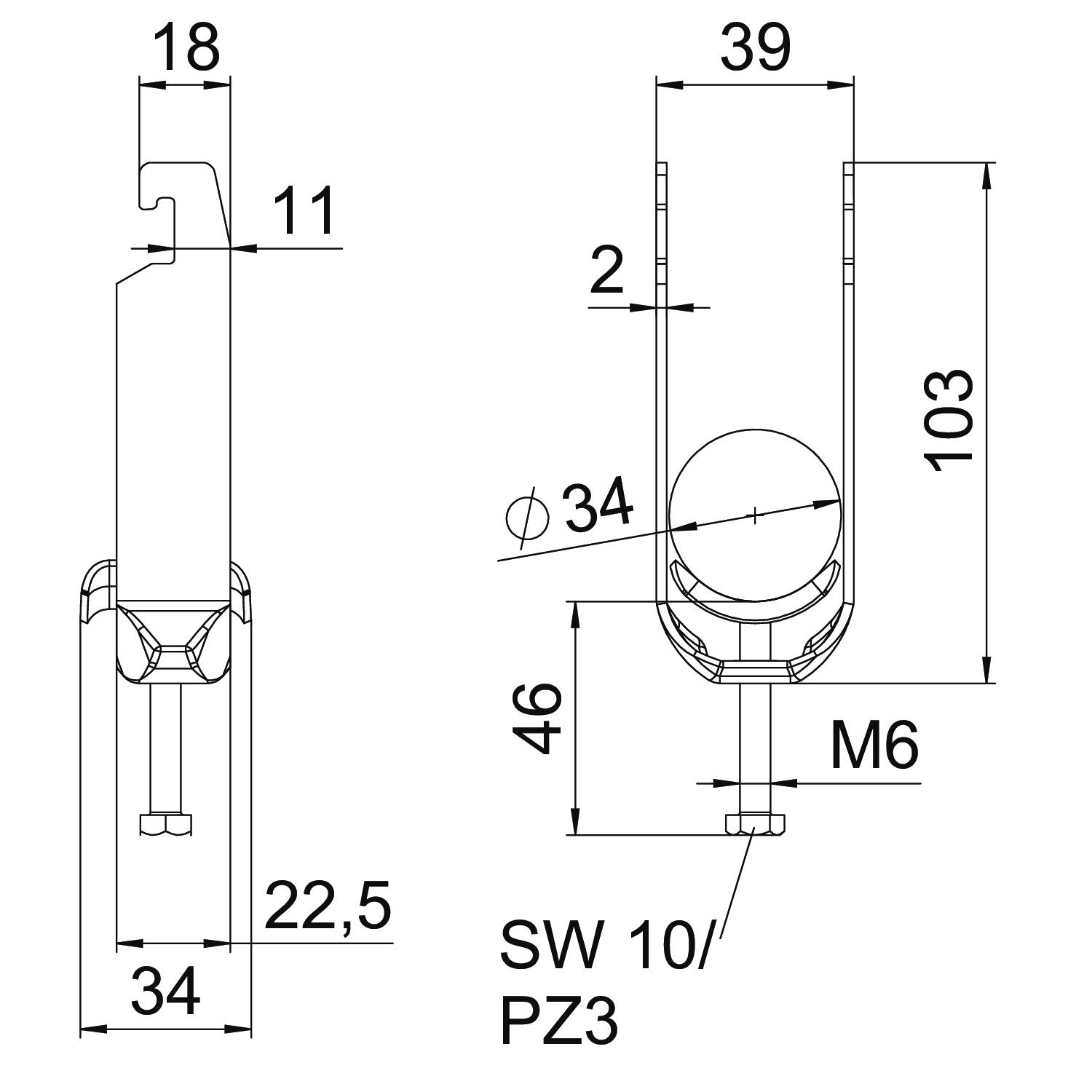 Altura 103 mm Com contraplaca não Com placa de plástico não Com placa metálica sim Comprimento 22,5 mm Comprimento exterior 34 mm Dimensão 28-34mm Espessura das chapas 2 mm Funktionsgaranti sim Intervalo de aperto D máx. 34 mm Intervalo de aperto D mín. 28 mm Largura 39 mm Largura de rasgo 10 mm Livre de halogéneos sim Material Aço Material adicional Aço Material da cuba Aço Máx. Binário de aperto 3 Nm Medida A 22,5 mm Medida B 39 mm Medida C 34 mm Medida G (mm) M6 Medida H 103 mm Medida L 46 mm Medida t 2 mm Número de cabos/tubos 2 para diâmetro de tubo máx. 34 mm para diâmetro de tubo mín. 28 mm para perfil com rasgo (com intervalo) máx. 22 mm para perfil com rasgo (com intervalo) mín. 18 mm Pegada de CO2 (GWP) do berço ao portão 0,2227 kg CO2e / 1 Peça Rosca M6 Superfície Galvanizado por imersão a quente após maquinação Superfície adicional galvanizado a quente por centrifugação Tipo de montagem Perfil - Todos os tipos