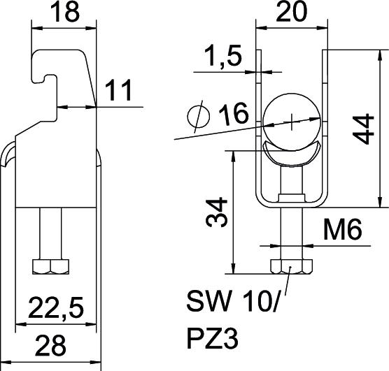 Descrição do produtoAbraçadeira BBS tipo U, placa de pressão metálica com arestas arredondadas para proteção de cabos. Para montagem vertical e horizontal de 1 cabo individual em perfil C. Para largura de rasgo 18 - 22 mm. Com parafuso simples na placa de pressão, cabeça de parafuso hexagonal universal tam. 10, com fenda e fenda em cruz. Adequado para montagem em áreas interiores e exteriores. Recomenda-se o uso de uma contraplaca.