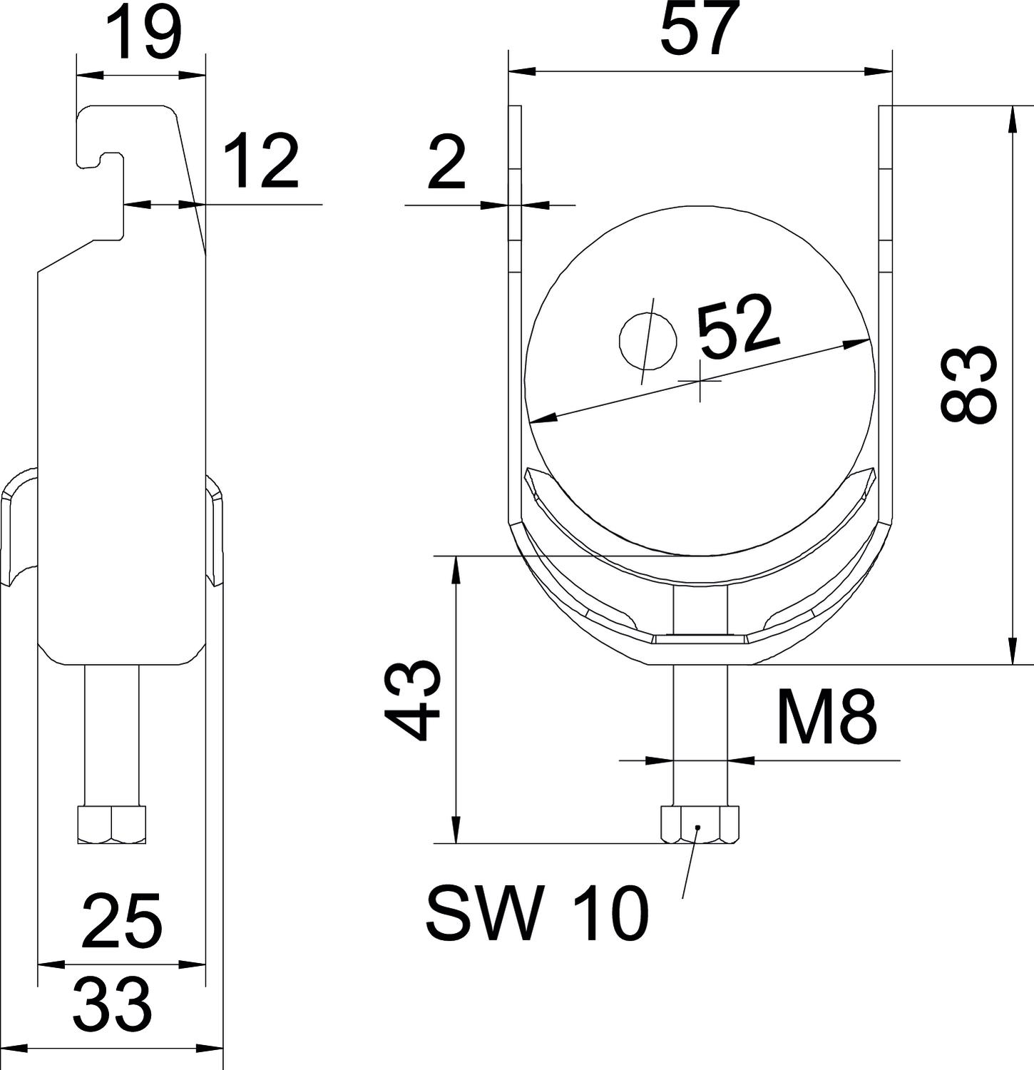 Altura 83 mm Com contraplaca não Com placa metálica sim Comprimento 25 mm Comprimento exterior 33 mm Dimensão 46-52mm Espessura das chapas 2 mm Intervalo de aperto D máx. 52 mm Intervalo de aperto D mín. 46 mm Largura 57 mm Largura de rasgo 10 mm Livre de halogéneos sim Material Aço inoxidável 1.4571 Material adicional aço inoxidável Material da cuba aço inoxidável Máx. Binário de aperto 5 Nm Medida A 25 mm Medida B 57 mm Medida C 33 mm Medida G (mm) M8 Medida H 83 mm Medida L 43 mm Medida t 2 mm Número de cabos/tubos 1 para diâmetro de tubo máx. 52 mm para diâmetro de tubo mín. 46 mm para perfil com rasgo (com intervalo) máx. 22 mm para perfil com rasgo (com intervalo) mín. 18 mm Pegada de CO2 (GWP) do berço ao portão 0,6431 kg CO2e / 1 Peça Rosca M8 Superfície brilhante, pós-tratamento Superfície adicional sem tratamento Tipo de montagem Perfil - Todos os tipos