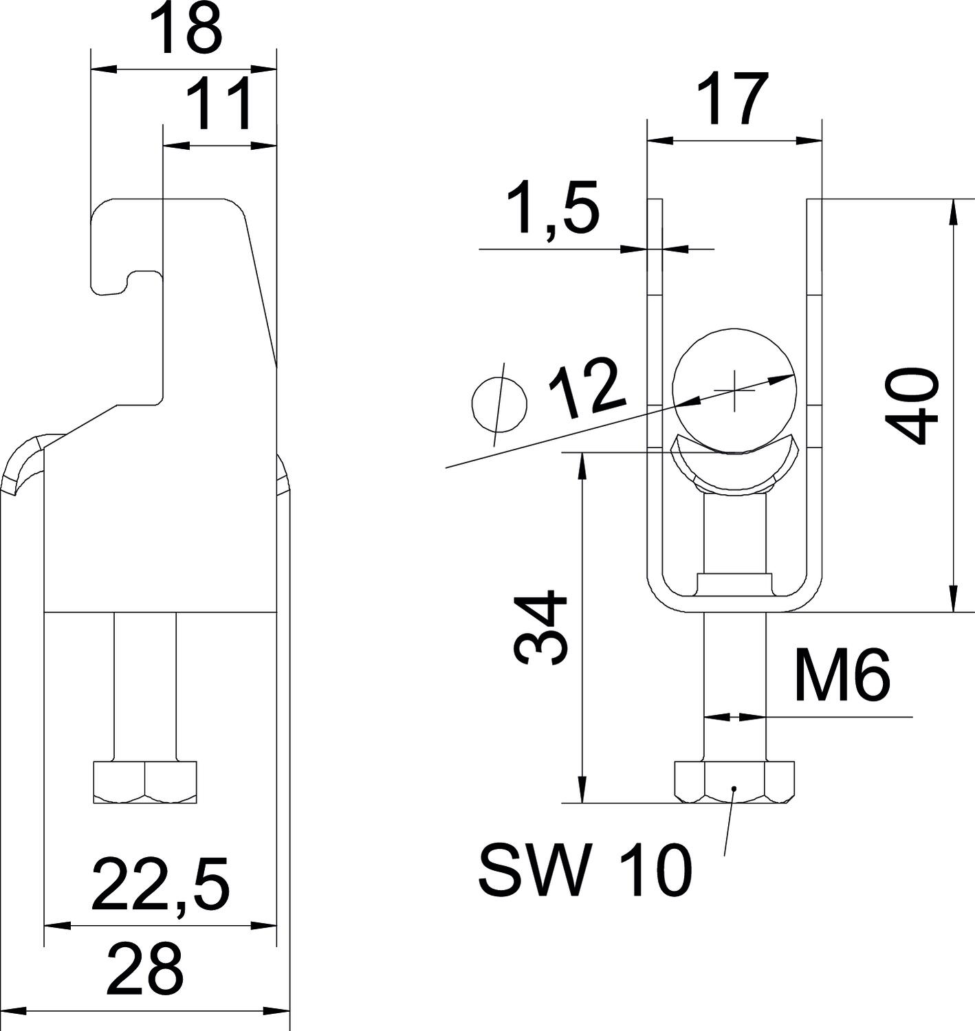 Descrição do produtoAbraçadeira BBS tipo U, placa de pressão metálica com arestas arredondadas para proteção de cabos. Para montagem vertical e horizontal de 1 cabo individual em perfil C. Para largura de rasgo 18 - 22 mm. Com parafuso simples na placa de pressão, cabeça de parafuso hexagonal universal tam. 10, com fenda e fenda em cruz. Adequado para montagem em áreas interiores e exteriores. Recomenda-se o uso de uma contraplaca.