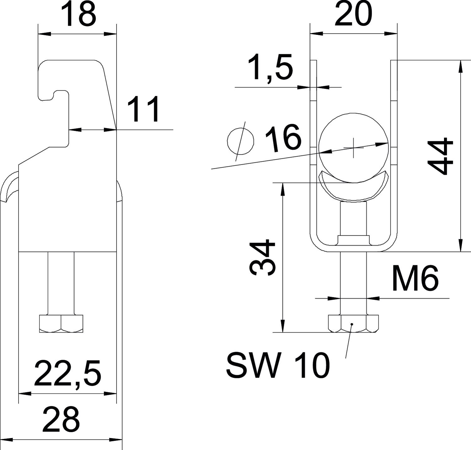 Descrição do produtoAbraçadeira BBS tipo U, placa de pressão metálica com arestas arredondadas para proteção de cabos. Para montagem vertical e horizontal de 1 cabo individual em perfil C. Para largura de rasgo 18 - 22 mm. Com parafuso simples na placa de pressão, cabeça de parafuso hexagonal universal tam. 10, com fenda e fenda em cruz. Adequado para montagem em áreas interiores e exteriores. Recomenda-se o uso de uma contraplaca.