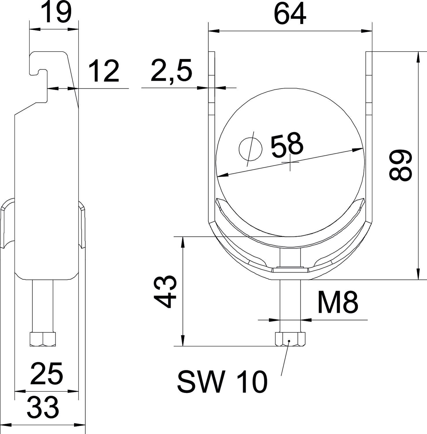 Altura 89 mm Com contraplaca não Com placa metálica sim Comprimento 25 mm Comprimento exterior 33 mm Dimensão 52-58mm Espessura das chapas 2,5 mm Funktionsgaranti sim Intervalo de aperto D máx. 58 mm Intervalo de aperto D mín. 52 mm Largura 64 mm Largura de rasgo 10 mm Livre de halogéneos sim Material Aço Material adicional Aço Material da cuba Aço Máx. Binário de aperto 5 Nm Medida A 25 mm Medida B 64 mm Medida C 33 mm Medida G (mm) M8 Medida H 89 mm Medida L 43 mm Medida t 2,5 mm Número de cabos/tubos 1 para diâmetro de tubo máx. 58 mm para diâmetro de tubo mín. 52 mm para perfil com rasgo (com intervalo) máx. 22 mm para perfil com rasgo (com intervalo) mín. 18 mm Pegada de CO2 (GWP) do berço ao portão 0,3232 kg CO2e / 1 Peça Rosca M8 Superfície Galvanizado por imersão a quente após maquinação Superfície adicional galvanizado a quente por centrifugação Tipo de montagem Perfil - Todos os tipos