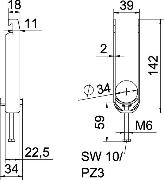 Altura 142 mm Com contraplaca não Com placa de plástico sim Comprimento 22,5 mm Comprimento exterior 34 mm Dimensão 28-34mm Espessura das chapas 2 mm Intervalo de aperto D máx. 34 mm Intervalo de aperto D mín. 28 mm Largura 39 mm Largura de rasgo 10 mm Livre de halogéneos sim Material Aço Material adicional Aço Material da cuba Plástico Máx. Binário de aperto 3 Nm Medida A 22,5 mm Medida B 39 mm Medida C 34 mm Medida G (mm) M6 Medida H 142 mm Medida L 59 mm Medida t 2 mm Número de cabos/tubos 3 para diâmetro de tubo máx. 34 mm para diâmetro de tubo mín. 28 mm para perfil com rasgo (com intervalo) máx. 22 mm para perfil com rasgo (com intervalo) mín. 18 mm Pegada de CO2 (GWP) do berço ao portão 0,2904 kg CO2e / 1 Peça Qualidade do material da cuba Polipropileno Rosca M6 Superfície Galvanizado por imersão a quente após maquinação Superfície adicional galvanizado a quente por centrifugação Tipo de montagem Perfil - Todos os tipos