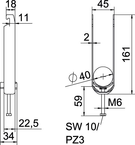 Altura 161 mm Com contraplaca não Com placa de plástico sim Comprimento 22,5 mm Comprimento exterior 34 mm Dimensão 34-40mm Espessura das chapas 2 mm Intervalo de aperto D máx. 40 mm Intervalo de aperto D mín. 34 mm Largura 45 mm Largura de rasgo 10 mm Livre de halogéneos sim Material Aço Material adicional Aço Material da cuba Plástico Máx. Binário de aperto 3 Nm Medida A 22,5 mm Medida B 45 mm Medida C 34 mm Medida G (mm) M6 Medida H 161 mm Medida L 59 mm Medida t 2 mm Número de cabos/tubos 3 para diâmetro de tubo máx. 40 mm para diâmetro de tubo mín. 34 mm para perfil com rasgo (com intervalo) máx. 22 mm para perfil com rasgo (com intervalo) mín. 18 mm Pegada de CO2 (GWP) do berço ao portão 0,3624 kg CO2e / 1 Peça Qualidade do material da cuba Polipropileno Rosca M6 Superfície Galvanizado por imersão a quente após maquinação Superfície adicional galvanizado a quente por centrifugação Tipo de montagem Perfil - Todos os tipos