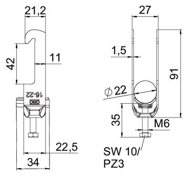 Altura 91 mm Com contraplaca não Com placa de plástico sim Comprimento 22,5 mm Comprimento exterior 34 mm Dimensão 16-22mm Espessura das chapas 1,5 mm Intervalo de aperto D máx. 22 mm Intervalo de aperto D mín. 16 mm Largura 27 mm Largura de rasgo 10 mm Livre de halogéneos sim Material Aço Material adicional Aço Material da cuba Plástico Máx. Binário de aperto 3 Nm Medida A 22,5 mm Medida B 27 mm Medida C 34 mm Medida G (mm) M6 Medida H 91 mm Medida L 35 mm Medida t 1,5 mm Número de cabos/tubos 1 para diâmetro de tubo máx. 22 mm para diâmetro de tubo mín. 16 mm Pegada de CO2 (GWP) do berço ao portão 0,1336 kg CO2e / 1 Peça Qualidade do material da cuba Polipropileno Rosca M6 Superfície Galvanizado por imersão a quente após maquinação Superfície adicional galvanizado a quente por centrifugação Tipo de montagem Perfil angular - Todos os tipos