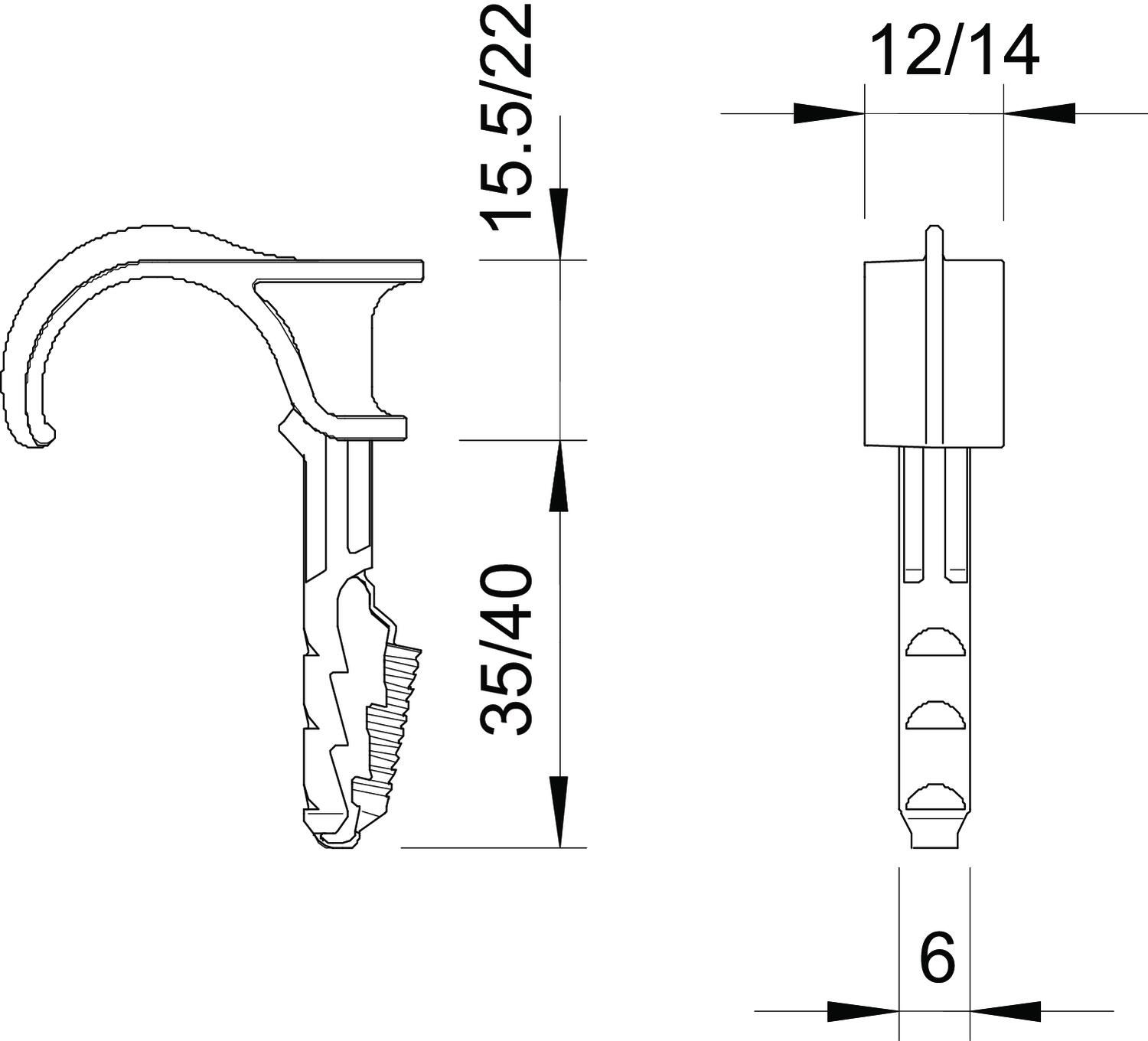 Carga de ruptura em betão B25 65 N Cor cinzento claro; RAL 7035 Diâmetro de perfuração mín. 6 mm Dimensão 22-30mm Intervalo de aperto D máx. 30 mm Intervalo de aperto D mín. 22 mm Livre de halogéneos sim Material Poliamida Pegada de CO2 (GWP) do berço ao portão 0,0206 kg CO2e / 1 Peça Profundidade do furo 40 mm Tipo de fixação Fixação por encaixe Versão uma patilha - Todos os tipos
